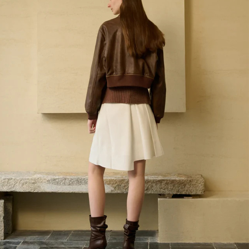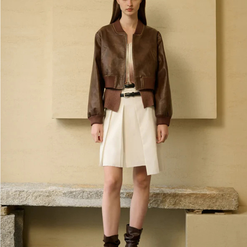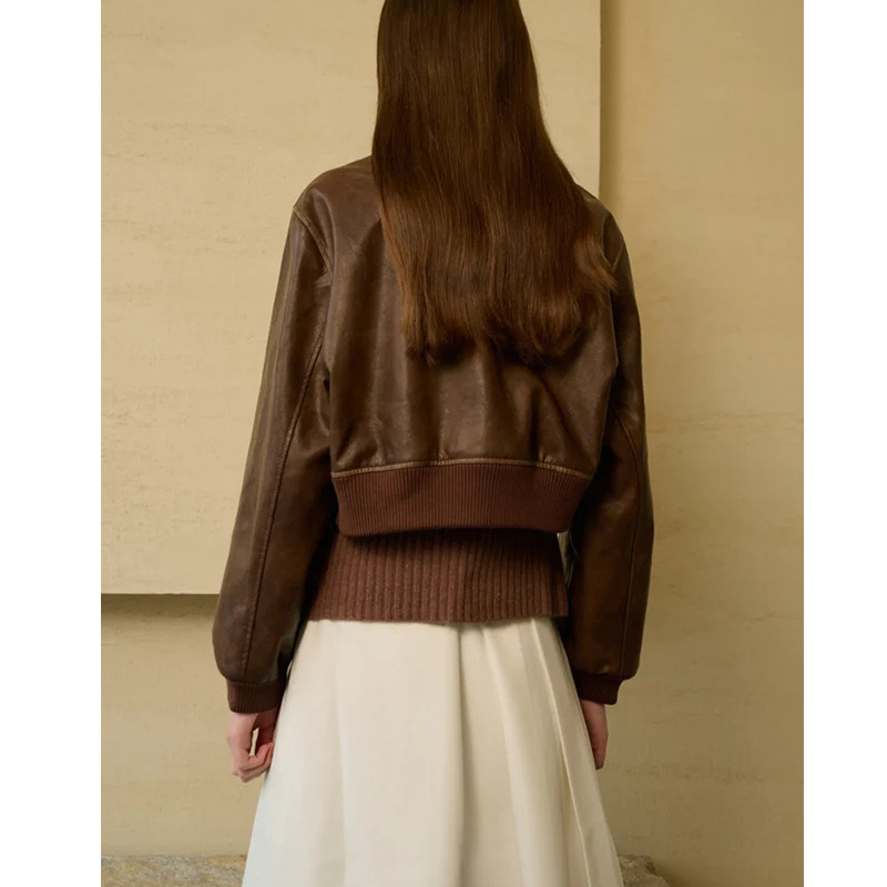 Stylish Zippered Leather Jacket With A Retro Biker-inspired Design And Long Sleeves